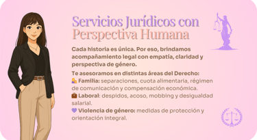 Asesoría legal profesional con un toque humano. Porque detrás de cada caso hay una persona que merece ser escuchada y defendida con dedicación.