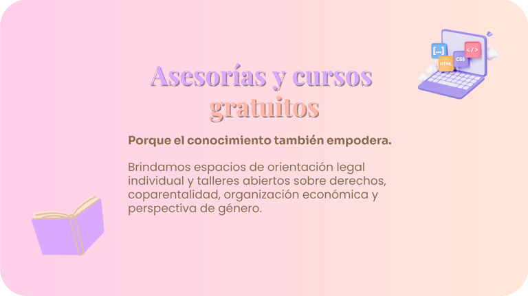 Capacitaciones y charlas con perspectiva de género, pensadas para que entiendas tus derechos, fortalezcas tu autonomía y formes parte de una comunidad que se apoya.
